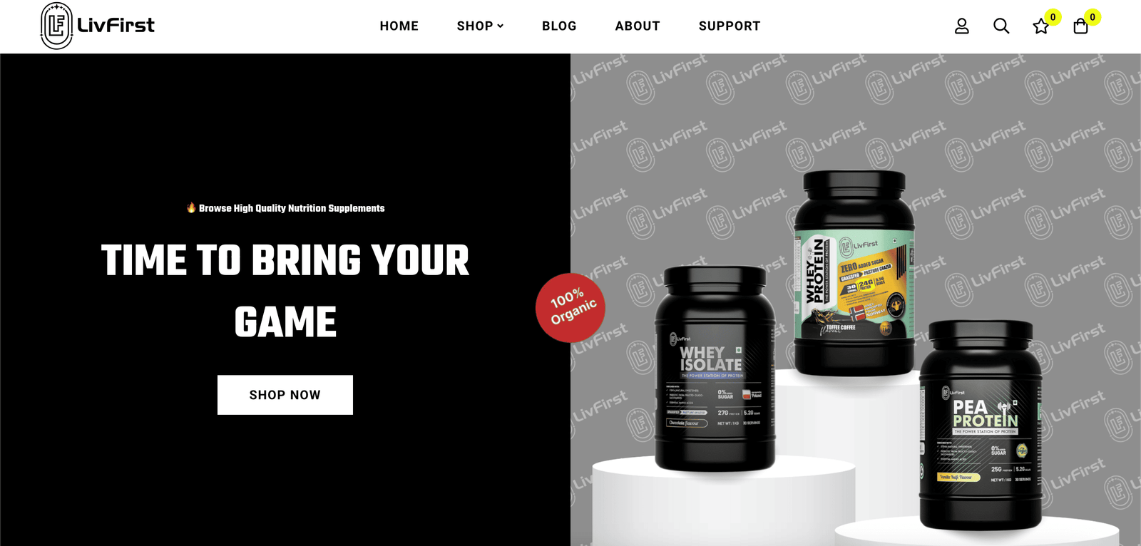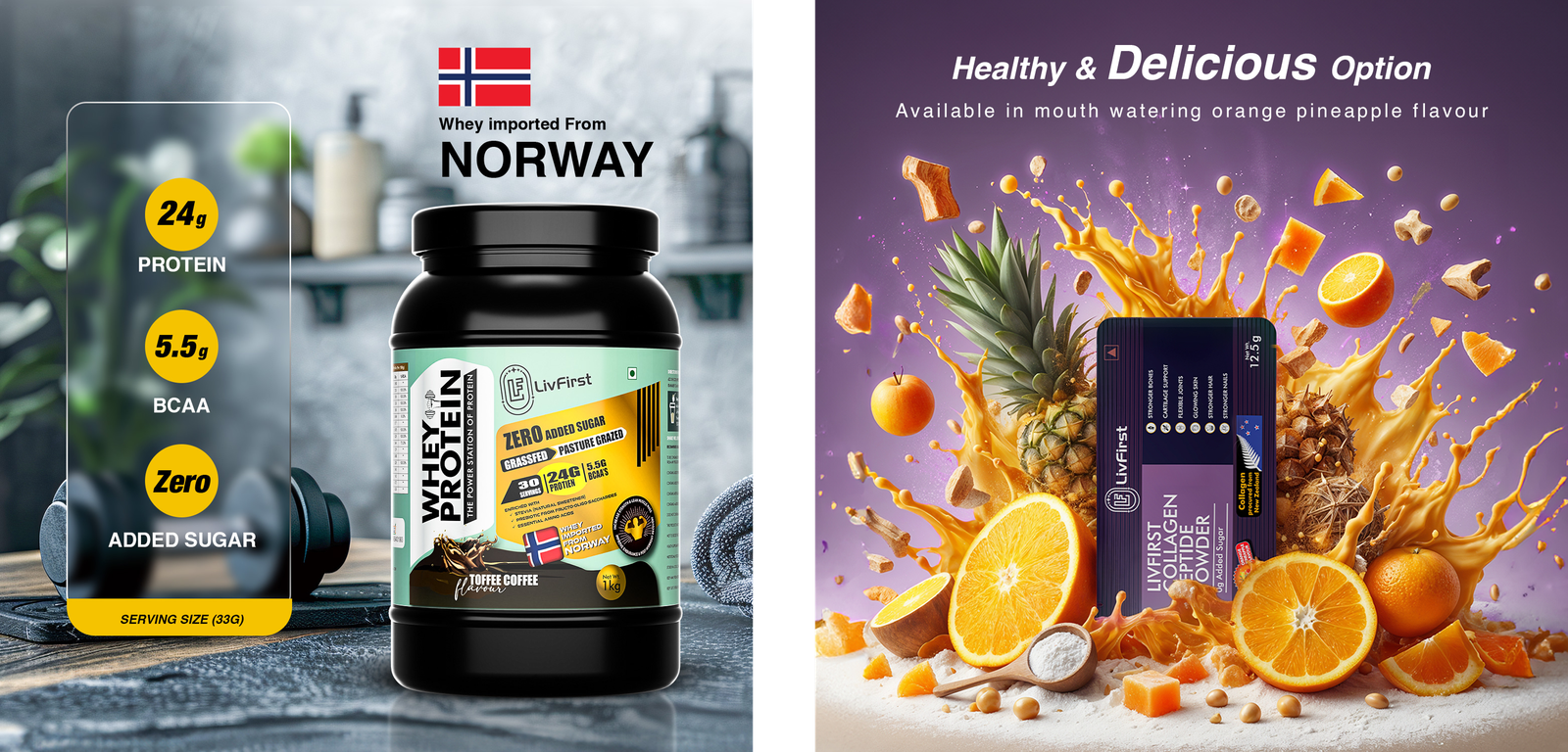 LivFirst is a modern health supplements brand offering premium formulations — including whey protein (concentrate and isolate), plant protein, collagen peptides, creatine, and magnesium glycinate. While their product quality was top-tier, they needed complete digital infrastructure to enter the D2C market with impact — including a high-performing e-commerce store, visually differentiated listing creatives, and visibility-driving SEO